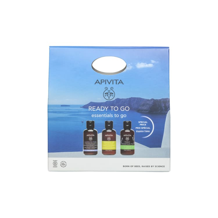 Apivita Ready To Go - pena za umivanje 75ml + nežni šampon 75ml + gel za tuširanje - planinski čaj 75ml
