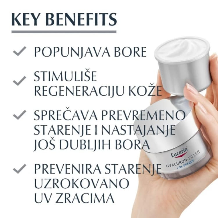 Smanjuje fine linije i bore: Hijaluronska kiselina dugog i kratkog lanca efikasno popunjava bore, čime se koža vidljivo podmlađuje i postaje glatkija.