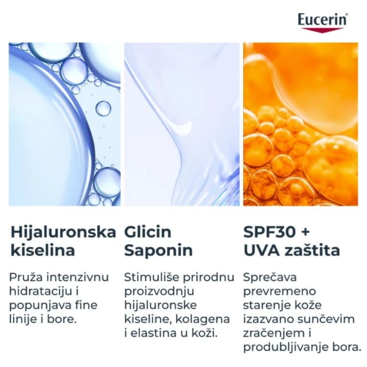 SPF 30 zaštita i UVA filteri: Štite kožu od UV zračenja, pomažu u prevenciji fotostarenja i sprečavaju produbljivanje postojećih bora.