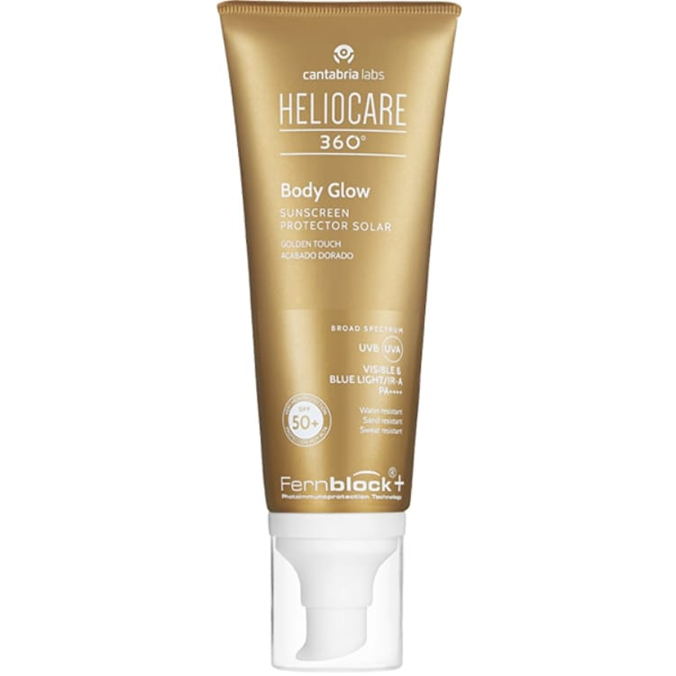 Heliocare 360° Body glow sunscreen SPF50+ je gel za telo sa veoma visokim zaštitnim faktorom i efektom sjaja namenjen za sve tipove kože uključujući i osetljivu, i efektom sjaja.Pruža veoma visok nivo zaštite protiv UVB i UVA zraka, vidljive svetlosti, IR-A zraka.