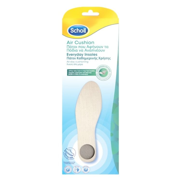 Scholl ulošci sa vazdušnim jastukom su osmišljeni za svakodnevnu upotrebu da tokom celog dana pruže udobnost i amortizaciju stopalima. 3000+ amortizujućih jastučića od gela koje ublažavaju pritisak i vrše amortizaciju. Tehnologija protiv klizanja koja sprečava gužvanja uložaka u obući.
