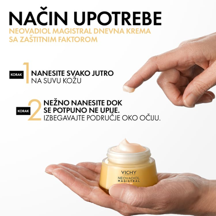 Nanesite na kožu ujutro nakon primene Neovadiol Meno 5 Bi-seruma.